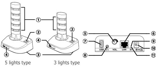 | LED color | (5 light type) red, yellow, blue, green, white (3 light type) red, yellow, green |